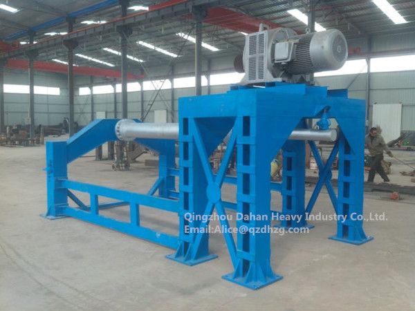 This machine uses the Roller to support the concrete pipe mould, and produce the roller force to concrete in the mould. When the roller rotate at a high speed, the concrete in the mould will spread in the inner wall of the pipe mould and form a cement pipe with the centrifugal force, and when the mould with the inner concrete pass on the roller, the concrete between the mould and the roller will be compacted solid to form a pipe.